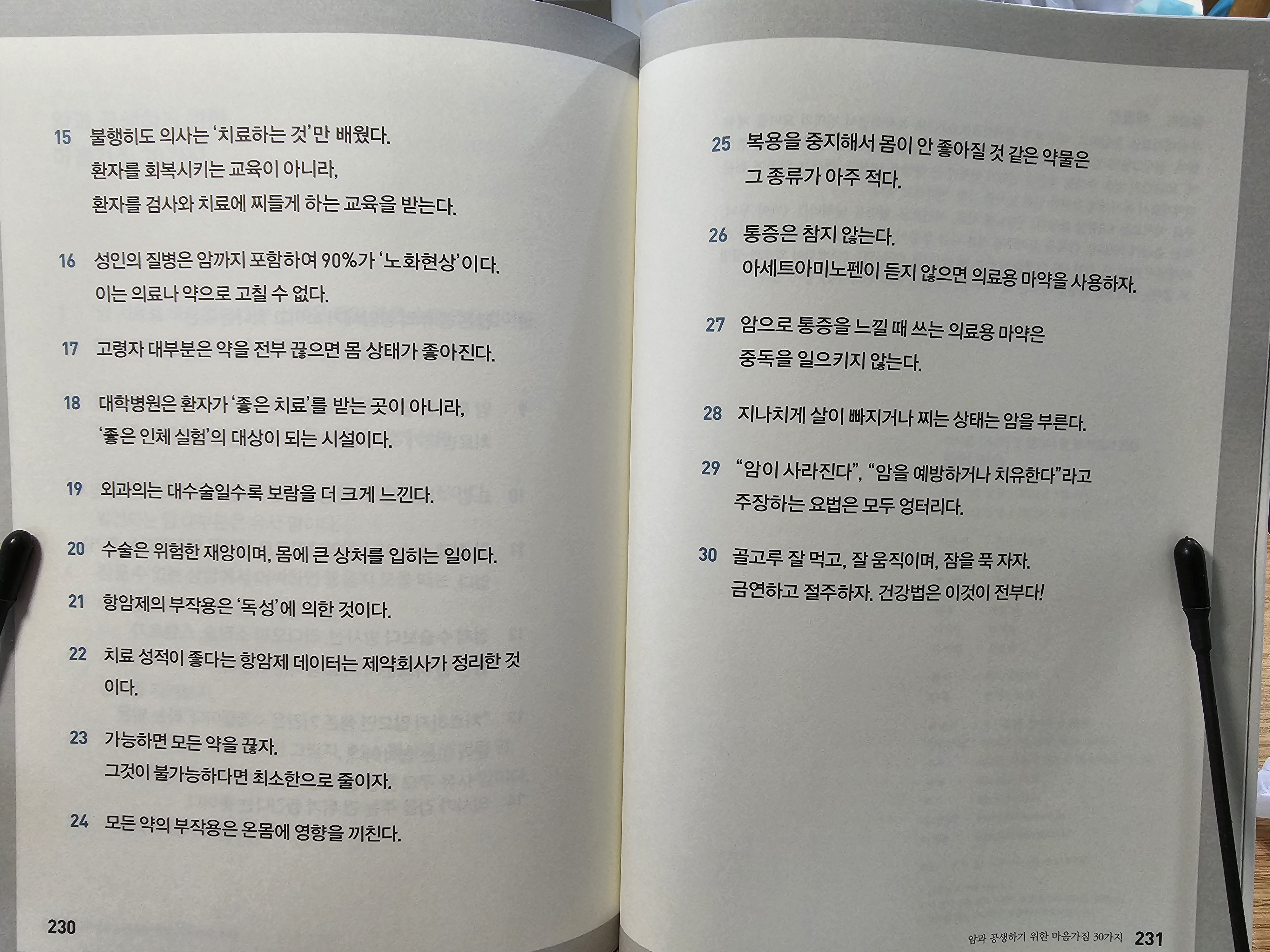 암과 공생하기 위한 마음가짐 30가지