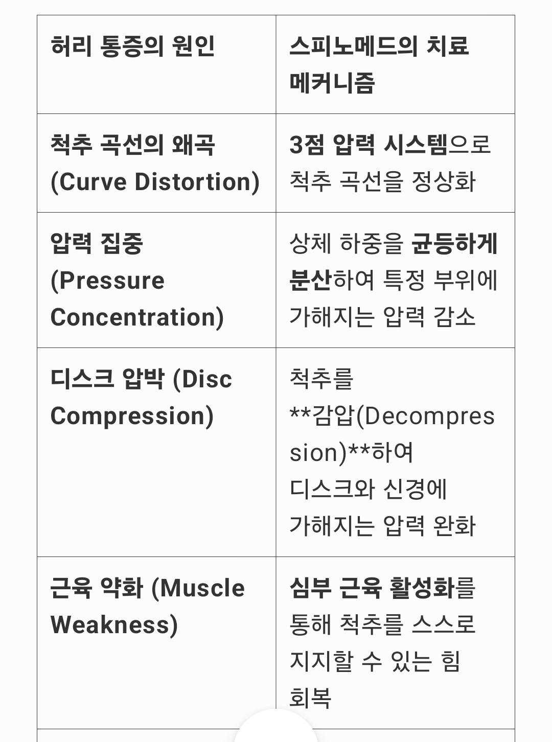 ✅ 4. 허리 통증의 근본 원인 vs. 스피노메드의 치료 메커니즘