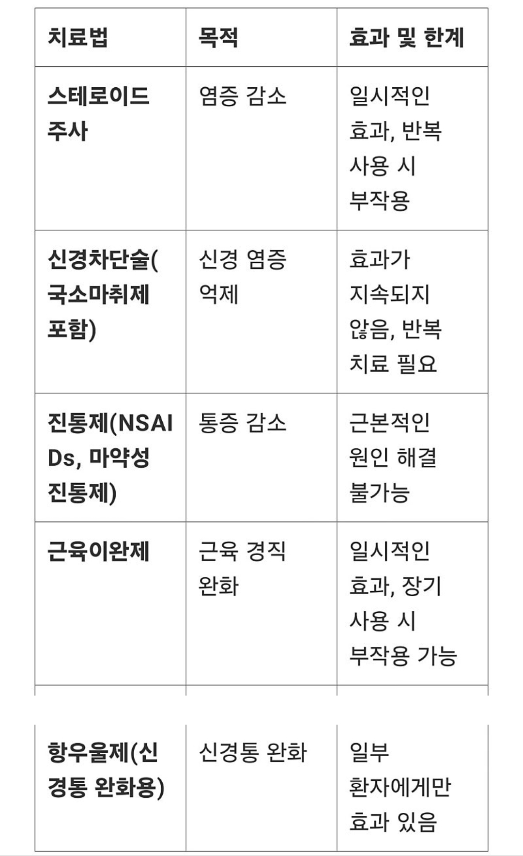 📌 주사 치료와 약물 치료는 통증을 줄이는 역할일 뿐, 근본적인 치료가 아닙니다.