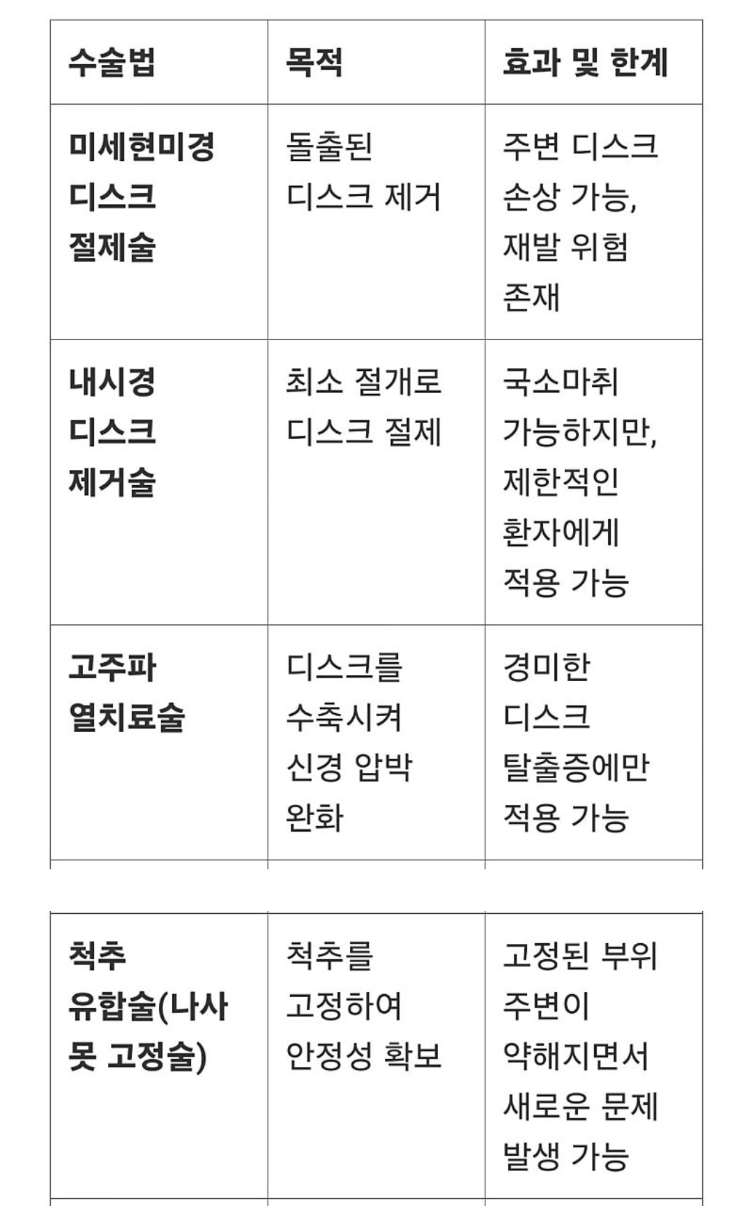 📌 수술 치료는 신경 압박이 심하거나, 일상생활이 어려울 정도로 통증이 지속될 때 시행됩니다.