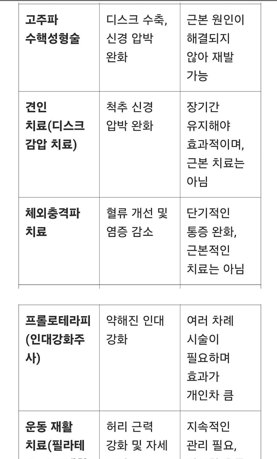 📌 비수술 치료는 일시적인 증상 완화 목적이며, 바른 자세와 척추 정렬 회복이 없으면 재발할 가능성이 큽니다.