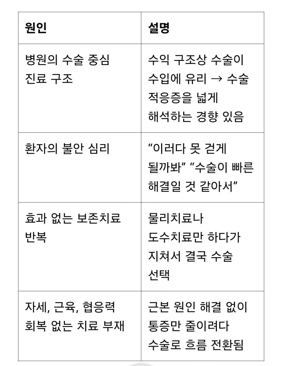 이런 ‘진짜 치료’를 받지 못하고 수술로 넘어가는 일,