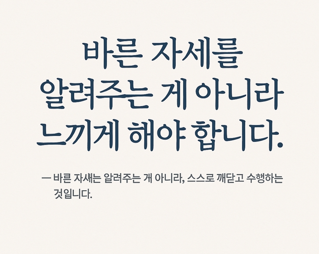 그래서 **바른 자세는 지식이 아니라 '느낌'과 '감각의 경험'**으로 전달돼야 합니다.