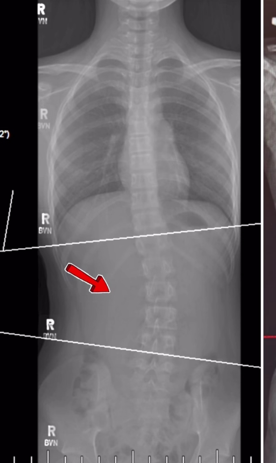 근육이 한쪽이 짧은 겁니다. 근육이 굳어서 짧아진 겁니다.