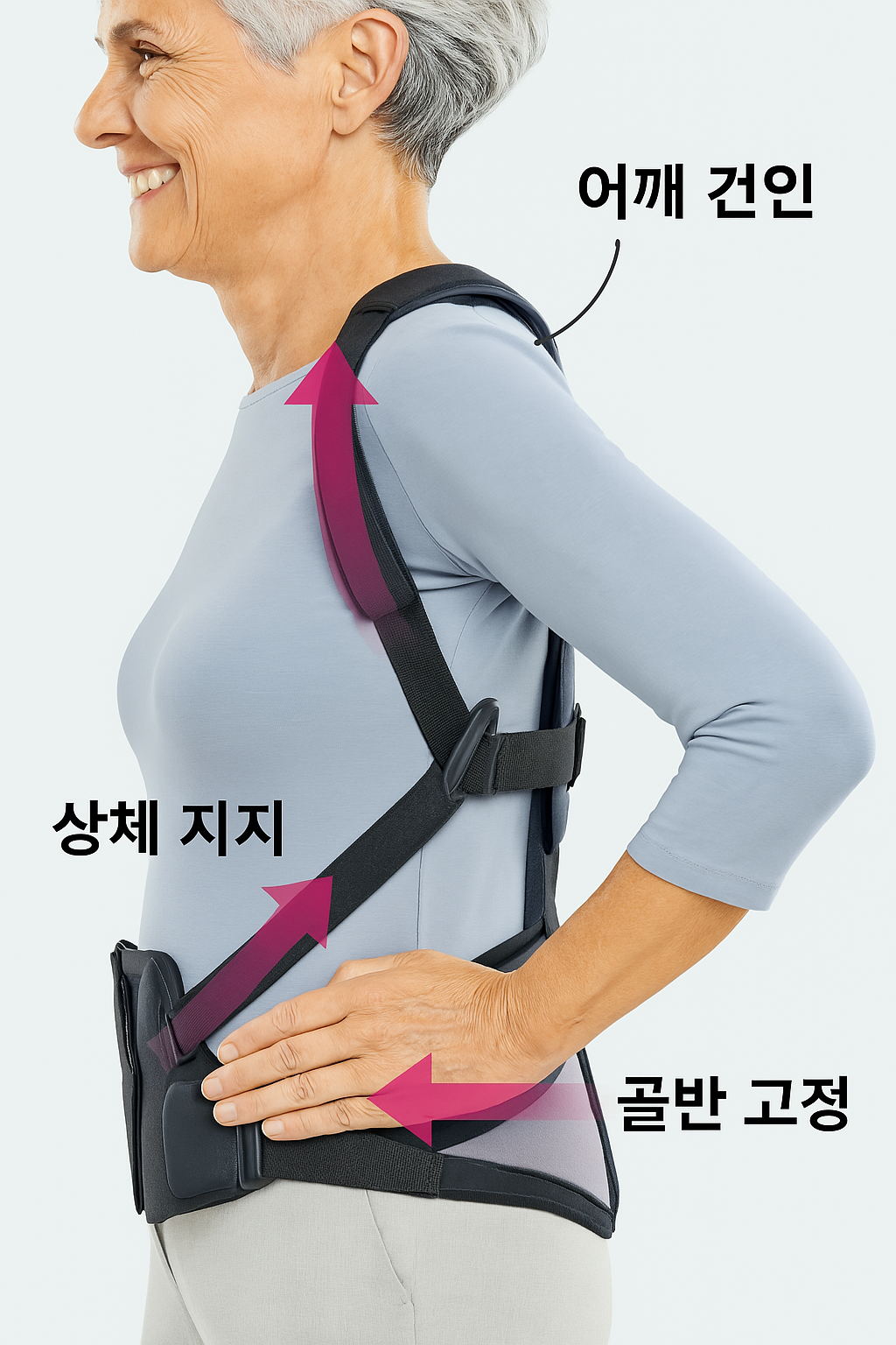 구부정한 자세(척추후만증)를 완화하고 바른 자세로 유도