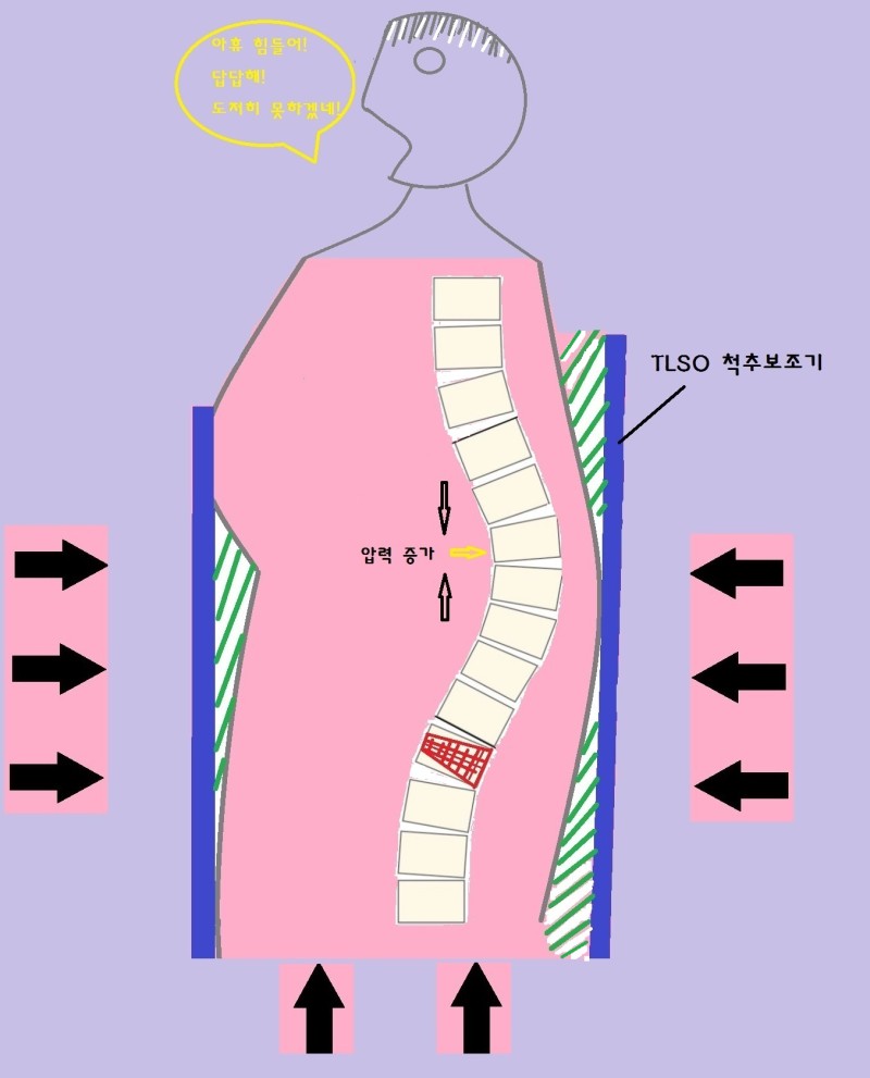 그런데 척추보조기는 사실 너무 불편하기도 하고 가슴도 답답하고 숨쉬기도 어렵다고 합니다.