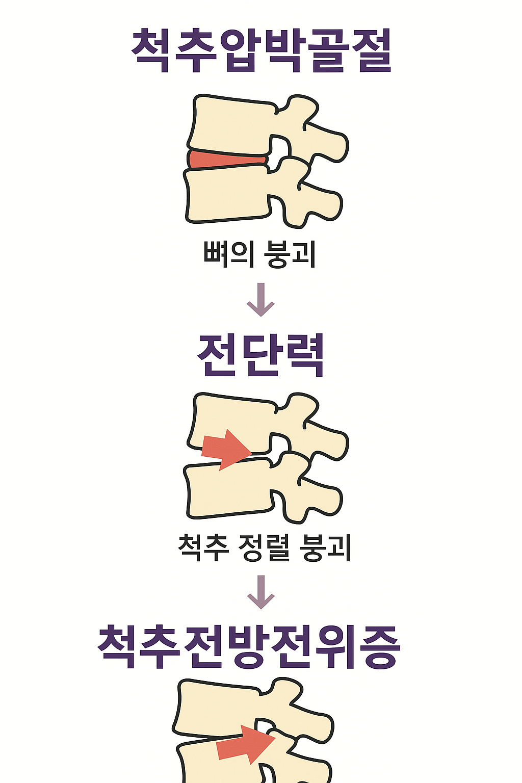 척추압박골절 → 전단력 → 척추전방전위증