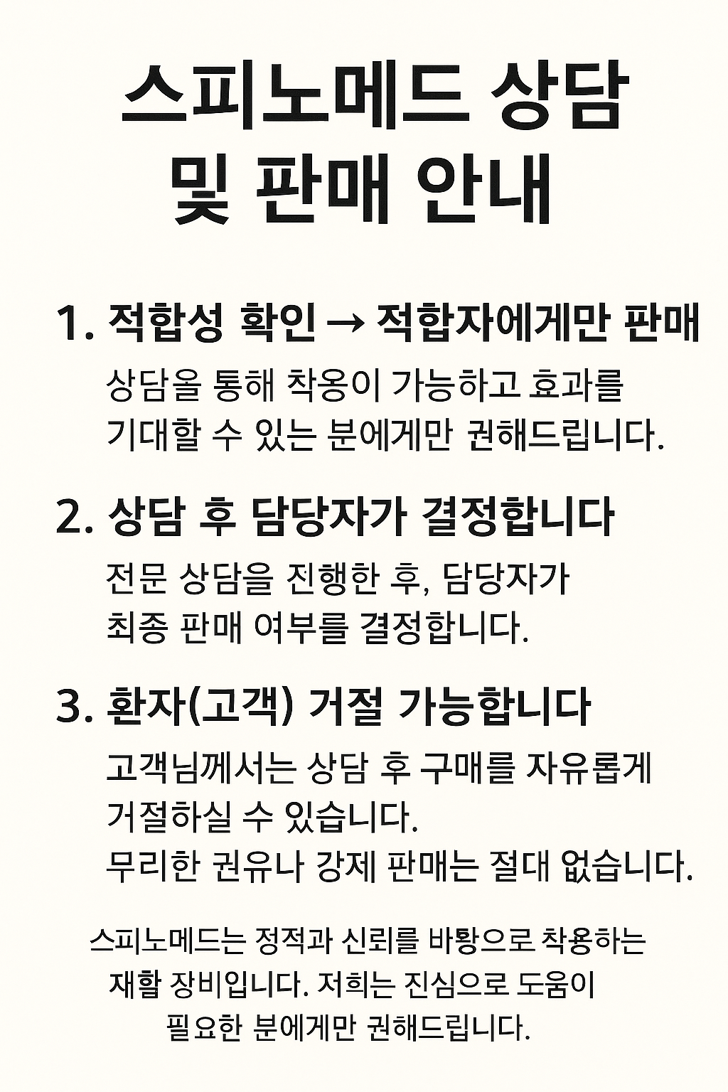 스피노메드 상담 및 판매 원칙