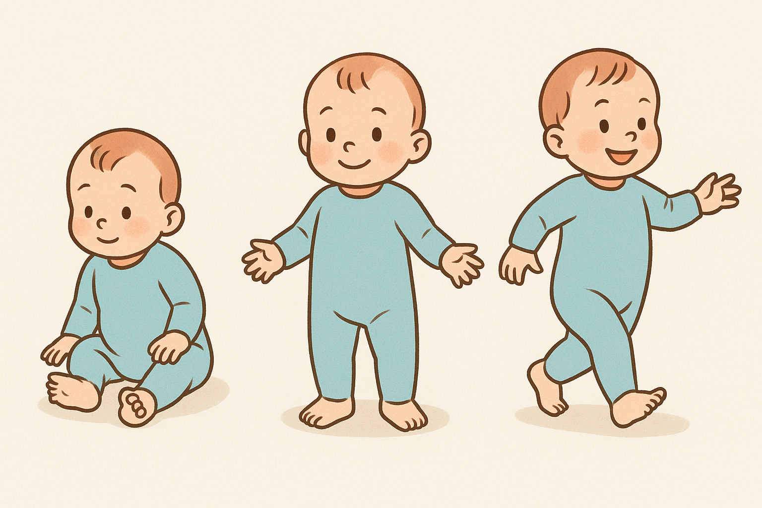 목을 가누고, 허리를 세우고, 앉을 수 있게 됩니다.