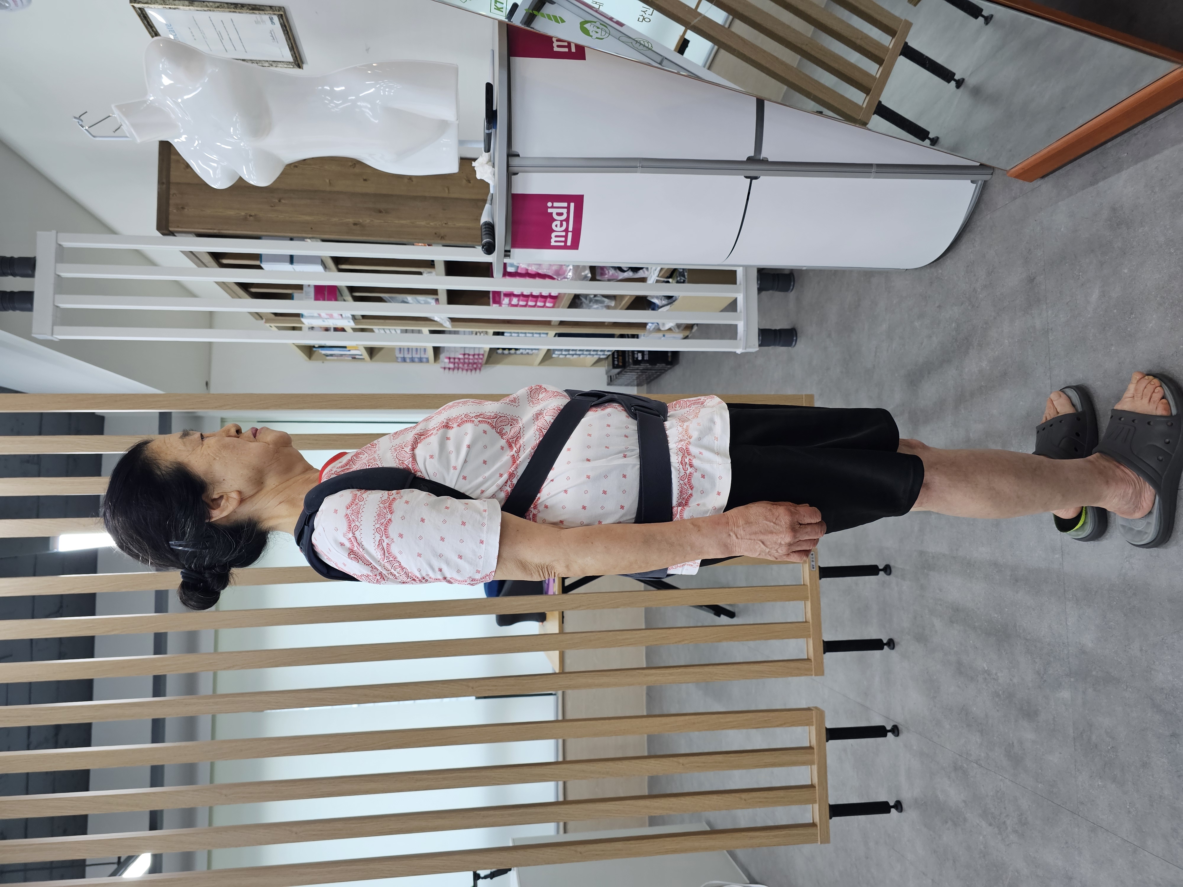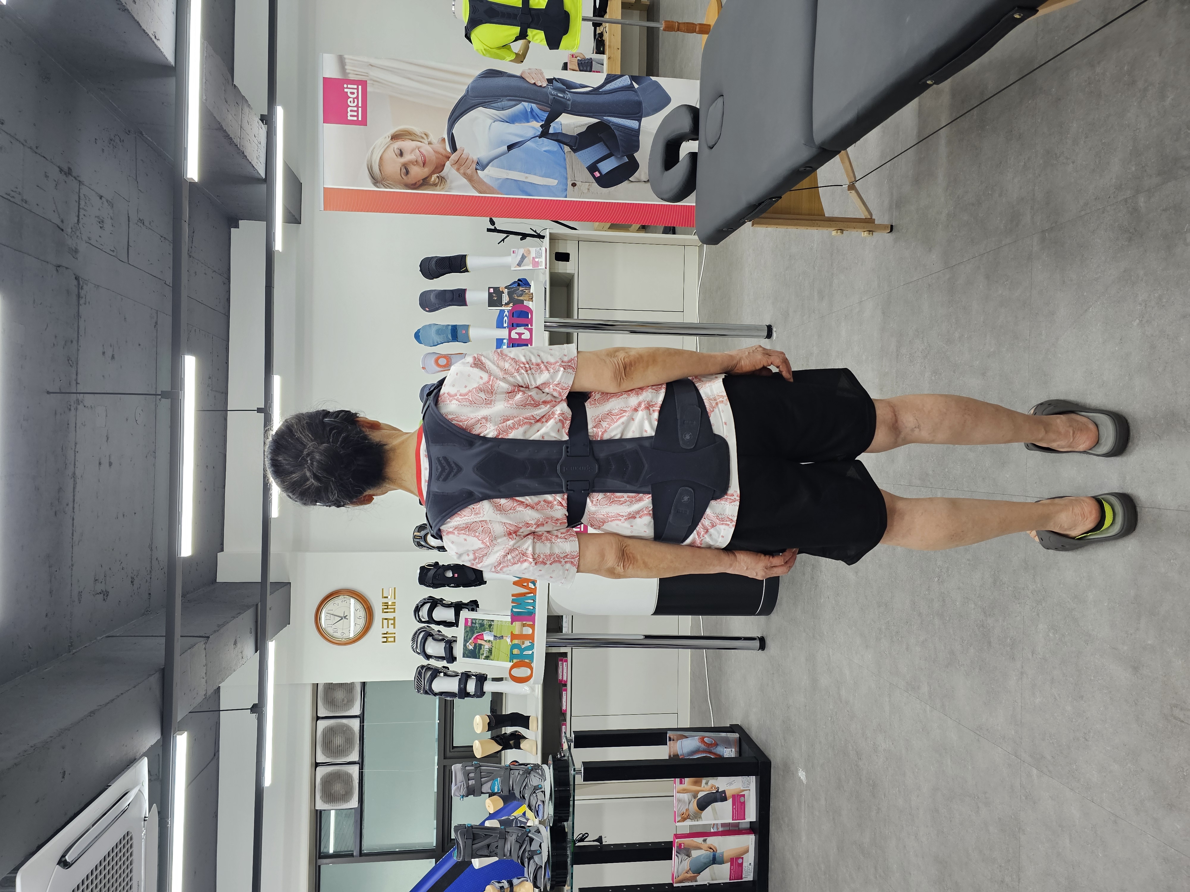 흉추~요추 경계: 부드러운 부목의 반발력이 등을 펴며 하중 분산