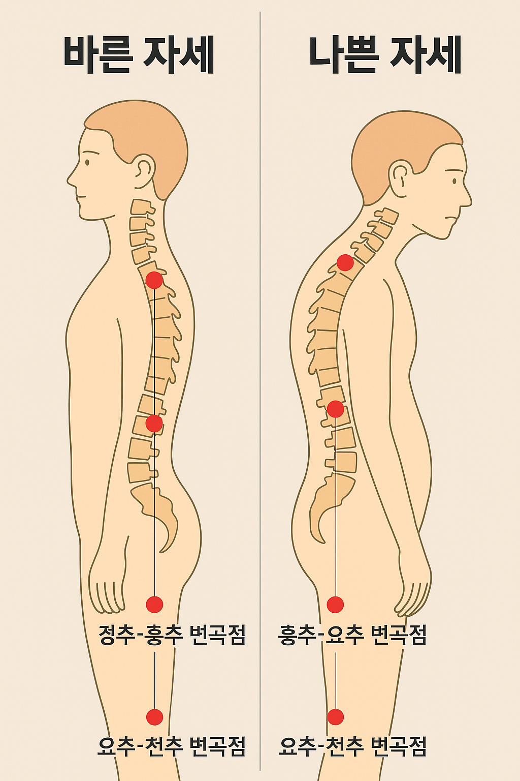 척추의 S자 곡선에서 변곡점이 차지하는 역할은 바른 자세 유지의 핵심 포인트 중 하나입니다.