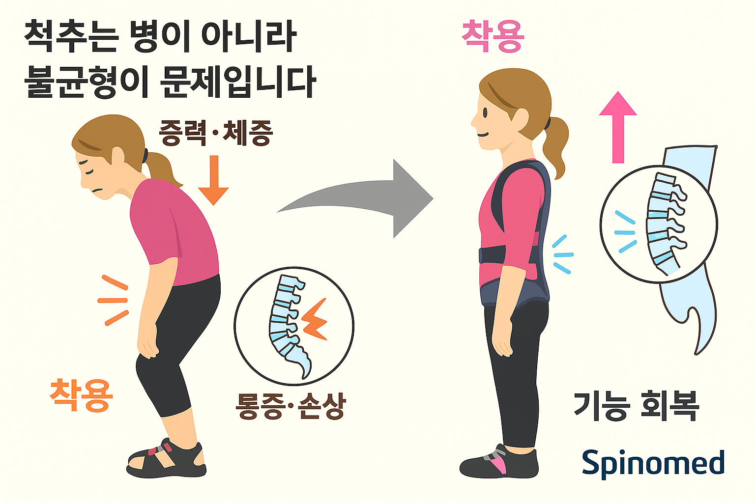 즉, 척추 질환은 단순히 병리적 파괴가 아니라 ‘균형 상실(balance loss)’의 결과로 보는 것이 타당하다.