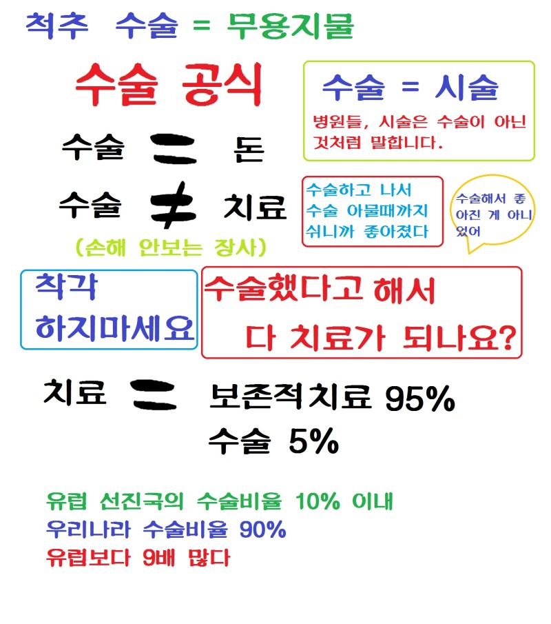국내외 여러 연구 결과를 보면, 척추 협착증 수술 후 환자의 증상 개선 정도는 약 70% 수준이다.
