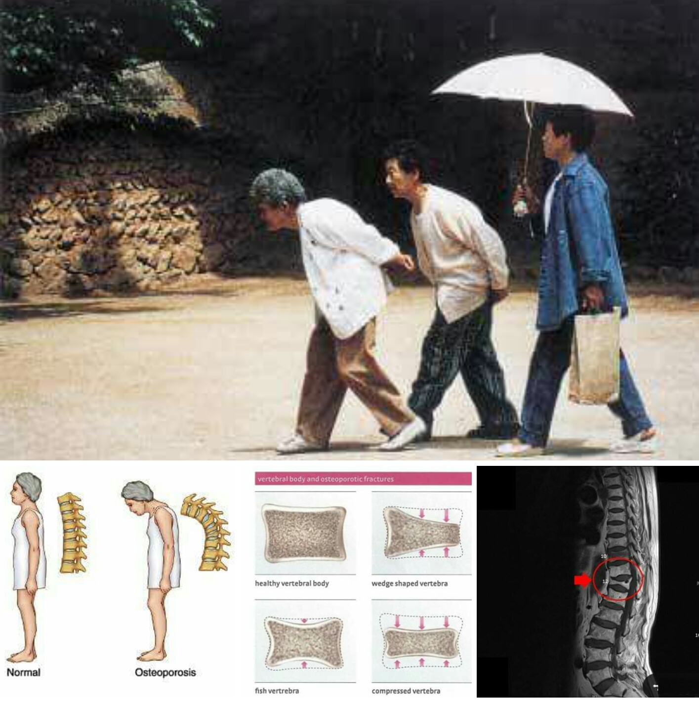 정확한 이름은 노인성척추후만증입니다. 이것은 나이가 들면서 허리가 굽어 등이 많이 튀어나온 상태를 말합니다. 우리가 흔히 '꼬부랑 할머니'라 말하는 상태입니다.