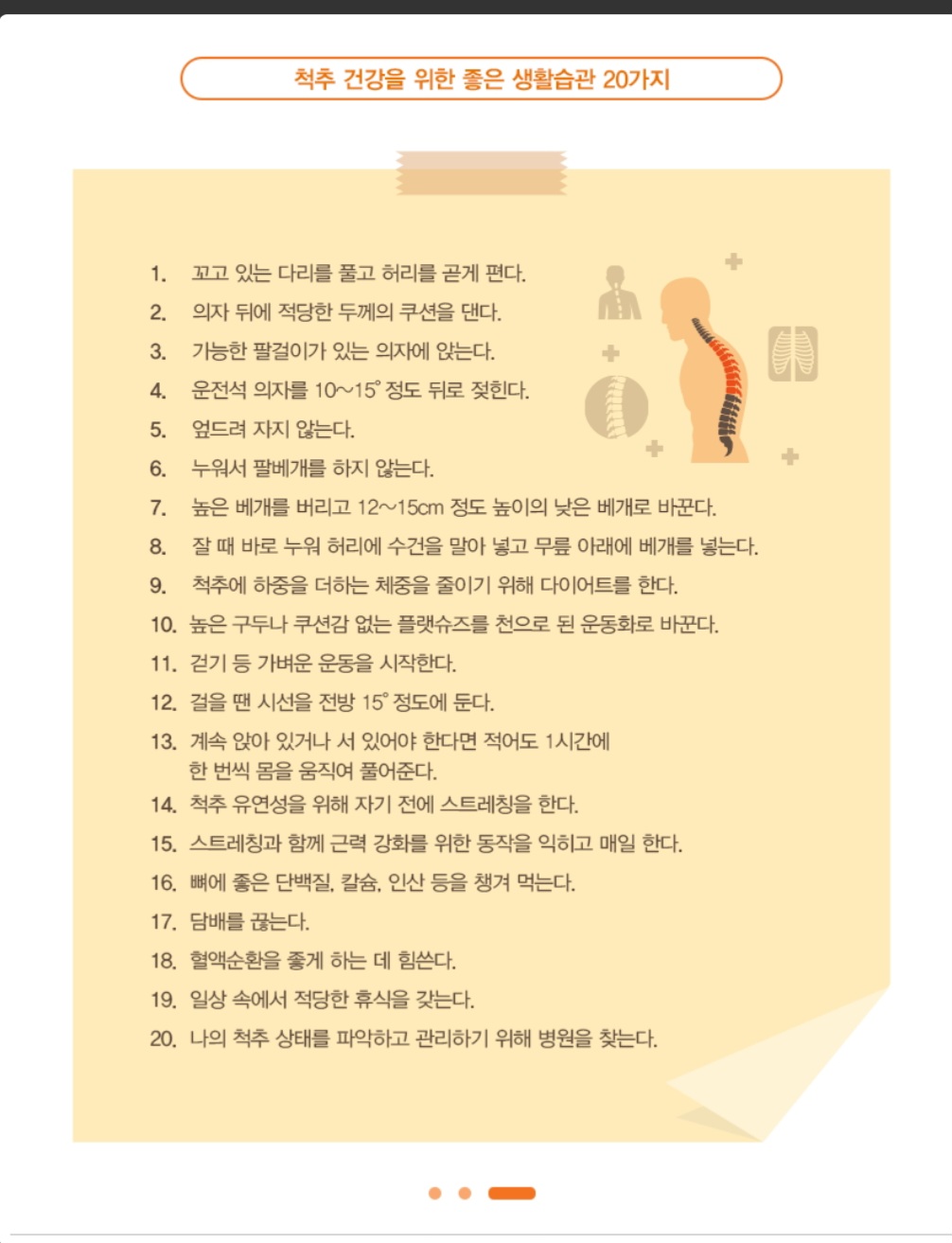 누군가 척추 건강을 위한 생활습관을 적어놓았는데요..