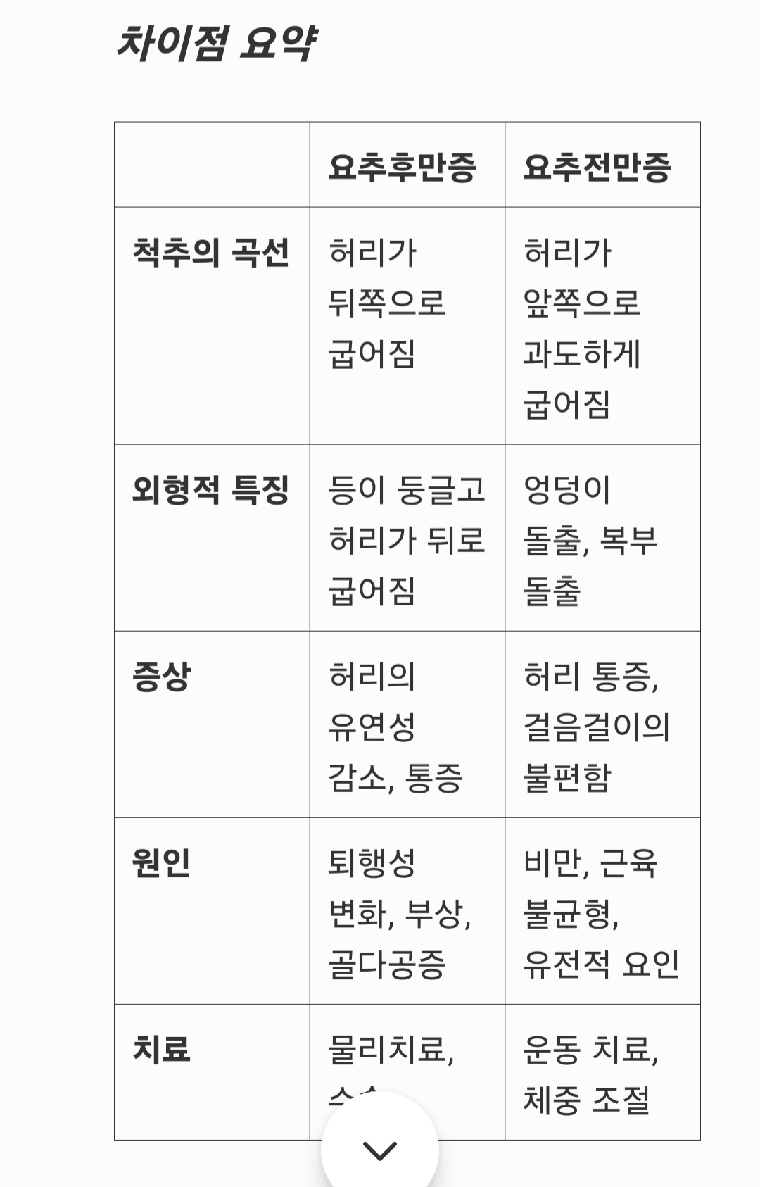 이 두 상태는 모두 척추의 불균형으로 인한 문제로, 장기적으로는 생활에 불편함을 줄 수 있어 전문의의 상담과 치료가 필요할 수 있습니다. 각 상태에 맞는 적절한 운동과 생활 습관 개선을 통해 척추 건강을 유지하는 것이 중요합니다.