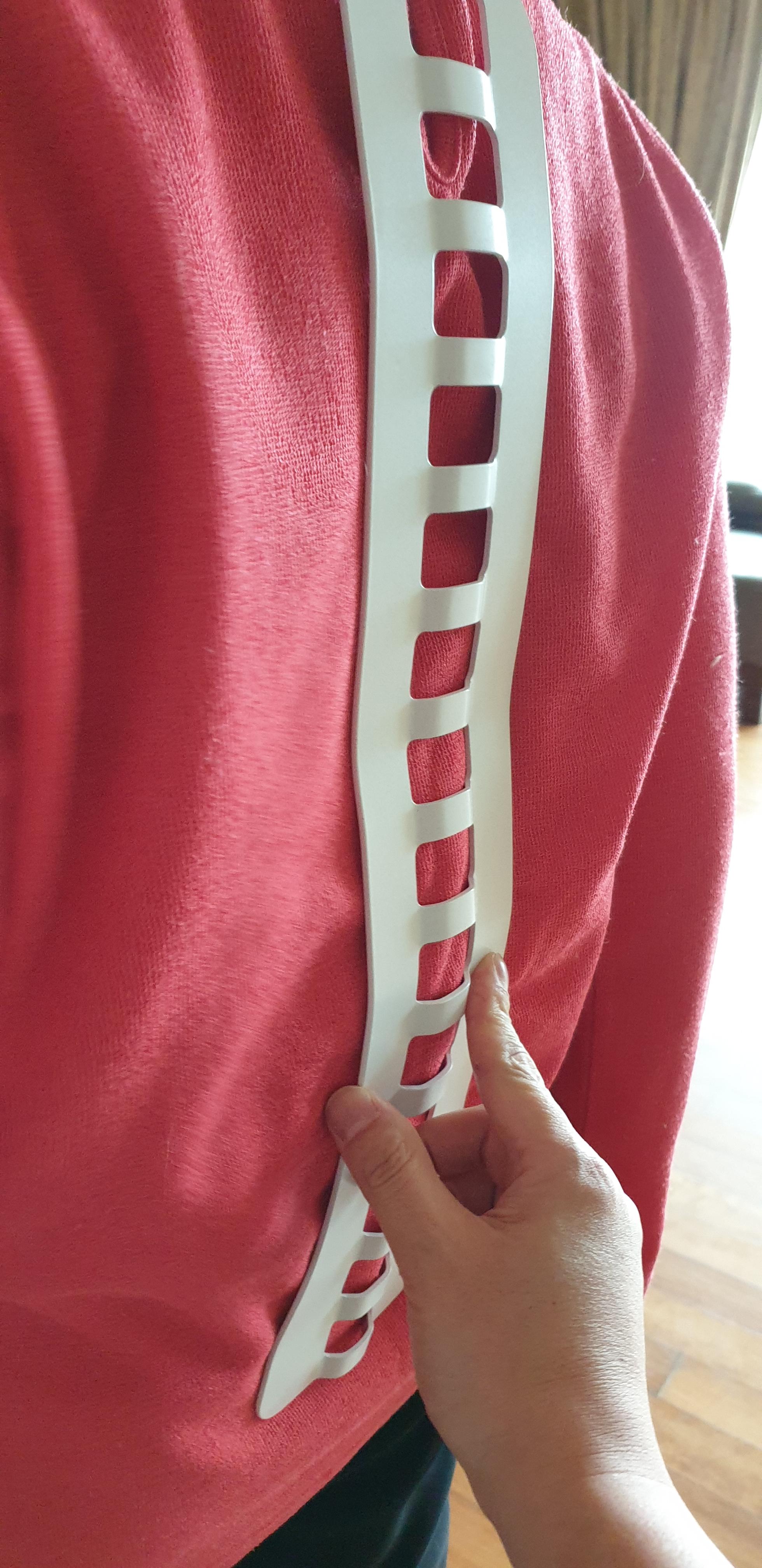 바로 스피노메드의 특수부목이 척추를 바로 잡아 줍니다. 올바른 자세로 만들어드립니다.